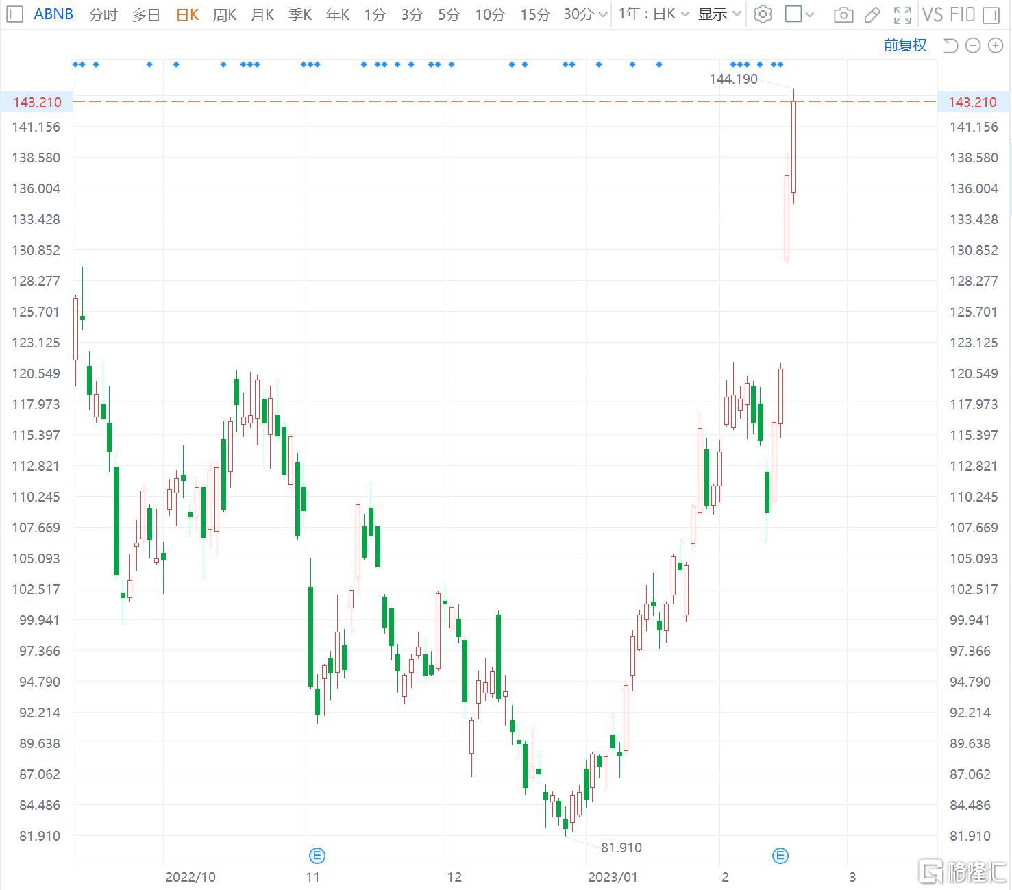 格隆汇2月16日丨爱彼迎(ABNB.US)涨4.19%,报142.75美元,总市值926亿美元,股价创去年5月新高。爱彼迎公布了2022年第四季度业绩:营收为19亿美元,同比增长24.2%,超出市场预期的18.6亿美元;净利润为3.19亿美元,上年同期为5500万美元;摊薄后每股收益为0.48美元,上年同期为0.08美元。爱彼迎预计2023年第一季度的营收在17.5亿美元至18.2亿美元,轻松超过分析师16.8亿美元的平均预测。